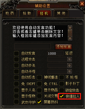2、快捷拉人:辅助窗口内勾选快捷拉人选项